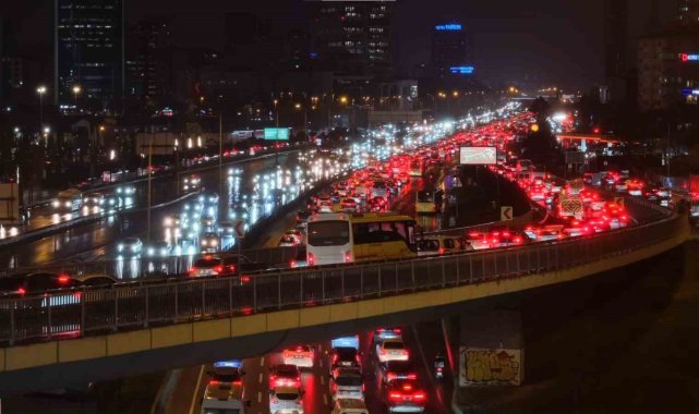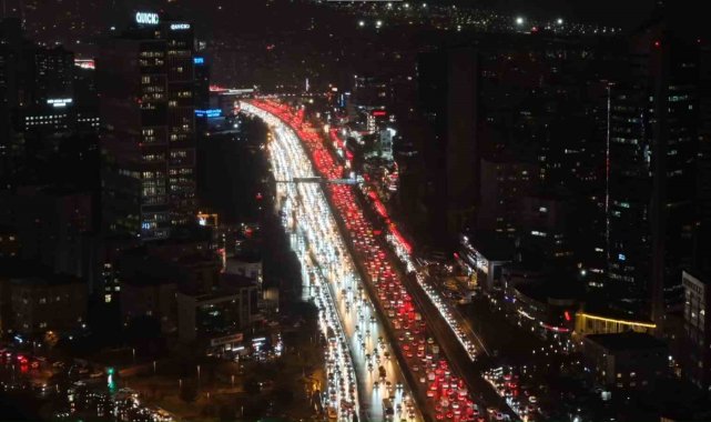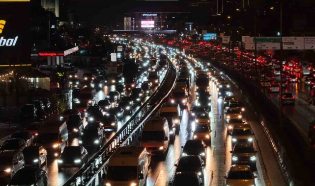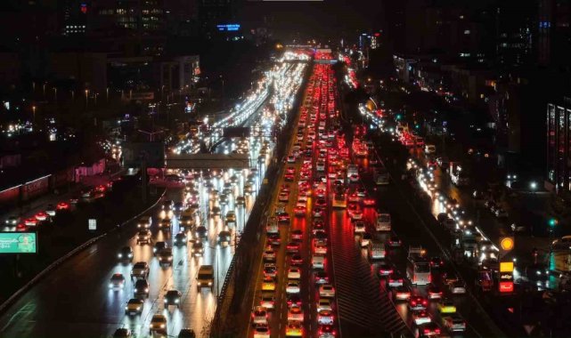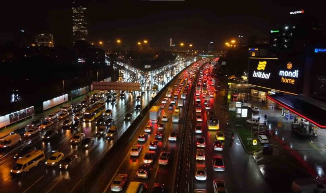 İstanbul'da akşam saatlerinde Anadolu ve Avrupa yakalarında trafik yoğunluğu yüzde 90 seviyelerine çıktı.İstanbul'da mesai bitimiyle trafik yoğunluğu arttı. Yağışın da etkisiyle Anadolu ve Avrupa yakalarında trafik yoğunluğu yüzde 90'a ulaştı. Yoğunluk nedeniyle birçok noktada araçlar ilerlemekte güçlük çekti. Anadolu yakası D-100 Karayolu Yenisahra mevki ile Avrupa Yakası Okmeydanı mevkiinde trafik adeta durma noktasına geldi. İstanbul Büyükşehir Belediyesi (İBB) trafik yoğunluk haritasına göre, saat 19.15 itibariyle kent genelinde trafik yoğunluğu yüzde 90 olarak ölçüldü.Şehir genelinde etkili olan trafik yoğunluğu havadan görüntülenirken, ana yollar ve bağlantı güzergahlarındaki sıkışıklık devam ediyor.