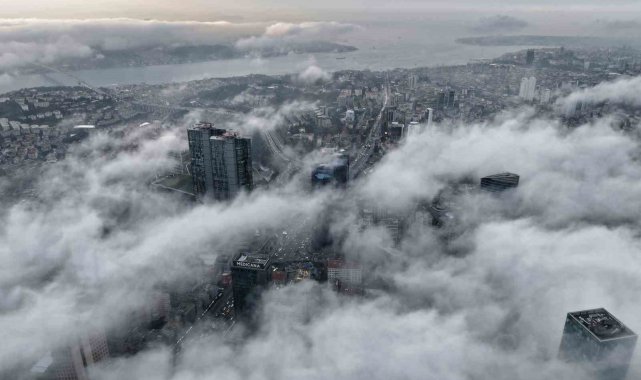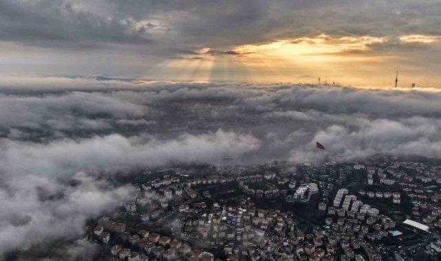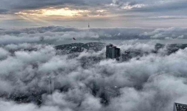 İstanbul, sabah saatlerinde etkili olan yoğun sis ve alçak bulutlarla birlikte eşsiz manzaralara sahne oldu. Gün doğumuyla beraber şehrin simge noktaları, bulutların üzerine çıkarak adeta gökyüzünde süzülen yapılar gibi göründü. Ortaya çıkan görüntüler, İstanbul'un farklı bir yüzünü gözler önüne serdi.