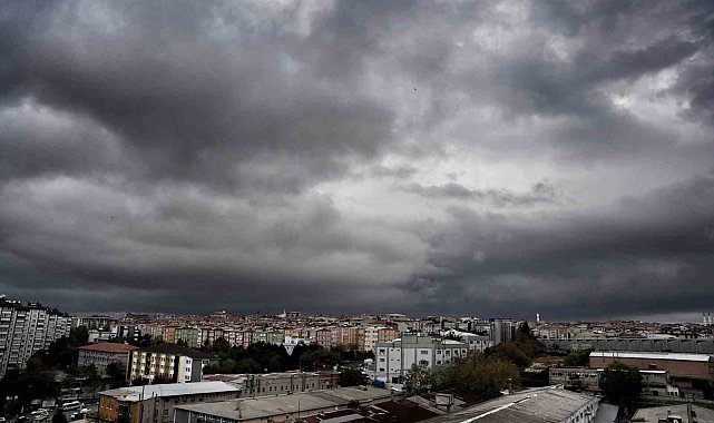 İstanbul'da beklenen sağanak yağış öncesinde şehrin üzerine kara bulutlar çöktü.