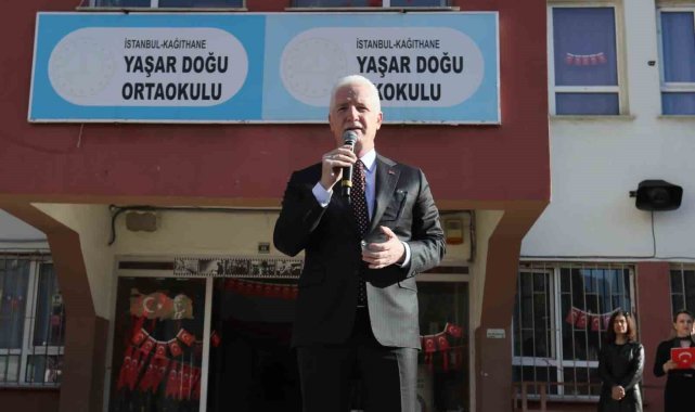 İstanbul Valisi Davut Gül, Kağıthane'de Yaşar Doğu Ortaokulu'nda öğrencilerle bir araya geldi. Yürütülen eğitim faaliyetlerine ilişkin bilgi alan Vali Gül, "İstanbul'da 1 milyon lisanslı sporcu hedefimiz var, şu anda 840 bin lisanslı sporcumuz bulunuyor. İnşallah yılsonuna kadar hedefimizi tamamlamış olacağız" dedi.İstanbul Valisi Davut Gül, Kağıthane'de bulunan Yaşar Doğu Ortaokulu'nu ziyaret etti. Ziyaret kapsamında okul bahçesinde gerçekleştirilen İstiklal Marşı törenine katılan Vali Gül'e Kâğıthane Belediye Başkanı Mevlüt Öztekin, İl Milli Eğitim Müdürü Murat Mücahit Yentür, Kâğıthane Kaymakamı Yüksel Kara, okul idarecileri, öğretmenler, öğrenciler ve veliler eşlik etti. Törenin ardından sınıfları gezen ve öğrencilerle sohbet eden Vali Gül, "Spor Şehri İstanbul" projesi kapsamında tüm öğrencilere milli takım forması dağıtımında bulundu.Okul ziyaretinde Kâğıthane Belediye Başkanı Mevlüt Öztekin ile birlikte yürütülen çalışmalar hakkında yetkililerden bilgi alan Vali Gül, öğrencilerin sosyal, kültürel ve sportif gelişimine yönelik projelere ilişkin değerlendirmelerde bulundu."Sizi hayata hazırlamak istiyoruz"Öğrencilere hitaben konuşan İstanbul Valisi Davut Gül, eğitim sürecinin yalnızca akademik başarıdan ibaret olmadığını vurgulayarak, gençlerin sosyal, sportif, kültürel gelişimlerini de önemsediklerini belirtti. Vali Gül konuşmasında şu ifadeleri kullandı:"Sosyal, sportif ve kültürel faaliyetler anlamında sizleri hayata hazırlamak istiyoruz. Bununla ilgili dört önemli projemiz var. Birincisi, her birinizin spor yapmasını istiyoruz, lisans çıkarmanızı istiyoruz. Sporla birlikte hem bedenen hem de ruhen gelişmenizi hedefliyoruz. İstanbul'da 1 milyon lisanslı sporcu hedefimiz var, şu anda 840 bin lisanslı sporcumuz bulunuyor. İnşallah yılsonuna kadar hedefimizi tamamlamış olacağız. İkincisi, sizlerin kitap okumasını istiyoruz. Okullarımızdaki kitap sayısını 6 buçuk milyondan 13 milyona çıkardık. Sizlerin kitap okumasını destekliyoruz. Her akşam saat 21.00'de teknolojik aletleri kapatarak ailenizle birlikte kitap okumanızı istiyoruz. Üçüncüsü, yeteneklerinize göre bir enstrüman çalmanızı istiyoruz. 'Enstrümansız okul kalmasın' projesiyle tüm okullarımızda müzik atölyeleri oluşturacağız. Dördüncüsü ise öğrenci meclislerimizdir. Okul, ilçe ve il öğrenci meclisleri aracılığıyla karar süreçlerine katılmanızı, istemediğiniz konularda hayır diyebilmenizi, merhametli ve vicdanlı bireyler olarak yetişmenizi istiyoruz. Polisiye tedbirleri geçmişte aldık, bundan sonra daha da artıracağız. Ancak bu saydığım dört proje aslında bizleri kötülüklerden koruyan ve hayata hazırlayan en önemli unsurlardır."Çanakkale gezisi müjdesiVali Gül, yaz döneminde Kağıthane Belediyesi ile birlikte organize edilecek program kapsamında Yaşar Doğu Ortaokulu ve Yaşar Doğu İlkokulu öğrencilerinin Çanakkale gezisine götürüleceğini de ifade etti.Başkan Öztekin: "Gençlerimizin her zaman yanındayız"Kağıthane Belediye Başkanı Mevlüt Öztekin ise öğrencilerle bir arada olmaktan memnuniyet duyduklarını belirterek, "Gençlerimizin eğitim, spor ve kültür alanlarında en iyi şekilde yetişmesi için Kâğıthane Belediyesi olarak tüm imkânlarımızla yanlarında olmaya devam ediyoruz" dedi.Ziyaret, okulda yürütülen çalışmalar hakkında yetkililerden alınan bilgi ve öğrencilerle yapılan sohbetlerin ardından sona erdi.