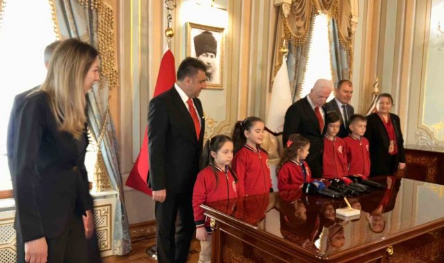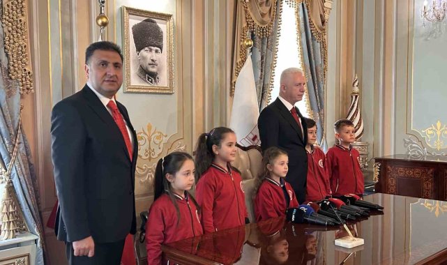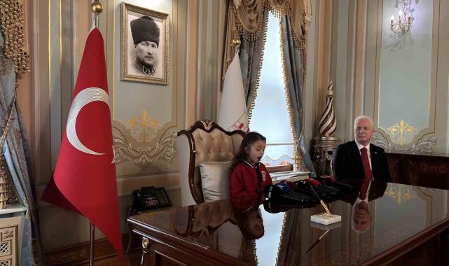 23 Nisan Ulusal Egemenlik ve Çocuk Bayramı dolayısıyla İstanbul Valisi Davut Gül, 10 şehirden gelen 30 öğrenciyi kabul etti. Vali Davut Gül, bayram dolayısıyla makamını 2'nci sınıf öğrencisi Asmin Ayşe Aslan'a bıraktı. Temsili Vali, okullarda güvenlik önlemleri arttırılsın talimatı verdi.İstanbul Valisi Davut Gül, 23 Nisan Ulusal Egemenlik ve Çocuk Bayramı dolayısıyla Ağrı, Ardahan, Artvin, Diyarbakır, Elazığ, Erzurum, Nevşehir, Rize, Sivas ve Şırnak illerinden, İstanbul'a gelen 30 öğrenci ve öğretmenlerini makamında kabul etti. Valilik binası kabul salonunda düzenlenen törene, İstanbul İl Milli Eğitim Müdürü Murat Mücahit Yentür ve okul müdürleri eşlik etti. Vali Davut Gül, öğrencilerin bayramını tebrik etti."Bu sene bayram sevincini buruk şekilde kutluyoruz"İl Milli Eğitim Müdürü Murat Mücahit Yentür, konuşmasında İstanbul Valisi Davut Gül'e teşekkür ederek, "Bu sene bayram sevincini buruk şekilde kutluyoruz. Anadolu'nun farklı illerinden gelen öğrencilerimizle birlikteliği, kaynaşma bilinci ve şuuruyla İstanbul'un çocuklarıyla kutlayalım dedik. Bu bayram coşkusunu beraber yaşasınlar. Elazığ, Erzurum, Diyarbakır'dan, Nevşehir'den gelen öğrencilerimiz var" şeklinde konuştu."İstanbul'u görmeniz, tanımanız buradaki İstanbullu öğrencilerle tanışmanız bu anlamda çok kıymetli"İstanbul Valisi Davut Gül, kendisini ziyaret eden çocukların bayramını kutlayarak, "Bayramınızı kutluyoruz. Rabbim nice bayramlara kavuştursun. 23 Nisan'ın iki anlamı var. Birincisi çocukların bayramı, ikincisi de Türkiye Büyük Millet Meclisi açılışı. O milli iradenin başlangıç günü. O açıdan da çok önemli. Biz, iki coşkuyu aynı anda yaşıyoruz. İstanbul şehirlerin hası. Bu anlamda İstanbul'u görmeniz, tanımanız buradaki İstanbullu öğrencilerle tanışmanız bu anlamda çok kıymetli. Burada kaldığınız süre içinde gezdiğiniz, gördüğünüz yerlerde daha sonralarda kitaplarda okuyacağınız kitaplarda okuduklarınızı görmüş olacaksınız" dedi."23 Nisan Ulusal Egemenlik ve Çocuk Bayramı ise bizler için bir bayram değil aynı zamanda atalarımızın bizlere bıraktığı emanetin taşıyıcısıdır"Vali Davut Gül'ün koltuğuna oturan Bahçelievler 15 Temmuz Şehitleri İlkokulu 2'nci sınıf öğrencisi Asmin Ayşe Aslan, "Aziz milletimiz Kurtuluş Savaşında birlik ve beraberlik içinde, inanç ve kararlılık içinde kazanmıştır. 23 Nisan 1920'de TBMM açılmıştır. Bu tarih bir dönüm noktasıdır. Milletimizin geleceğine, belleğine tüm dünyaya ilan edildiği tarihi bir gündür. 23 Nisan Ulusal Egemenlik ve Çocuk Bayramı ise bizler için bir bayram değil aynı zamanda atalarımızın bizlere bıraktığı emanetin taşıyıcısıdır" ifadelerini kullandı."Dileğim Filistin, Doğu Türkistan, İran, Suriye, Libya başta olmak üzere tüm dünya çocuklarının huzur içinde büyüdüğü, güvenle geleceğe baktığı ve kendi değerleriyle güçlü yarınlar kurduğu bir dünyanın var olmasıdır. Spor alanında yürütülen spor şehri İstanbul Projesiyle çocukların spora yönlendirilmesi teşvik edilmelidir. Sağlıklı, disiplinli ve özgüvenli olması gereklidir. Aynı zamanda Ben Okuyorum İstanbul Okuyorum Projesiyle okuma alışkanlığı kazandırmayı, düşünce dünyamızı geliştirmektedir. Dileğim Filistin, Doğu Türkistan, İran, Suriye, Libya başta olmak üzere tüm dünya çocuklarının huzur içinde büyüdüğü, güvenle geleceğe baktığı ve kendi değerleriyle güçlü yarınlar kurduğu bir dünyanın var olmasıdır" şeklinde konuştu.