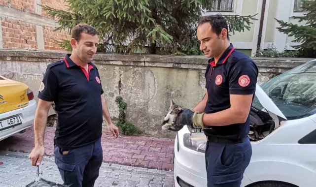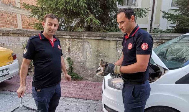 Samsun'un Bafra ilçesinde bir aracın altına sıkışan yavru kedi itfaiye ekiplerini çalışması sonrası kurtarıldı.