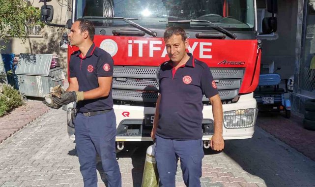 İtfaiye ekiplerinden yavru kedi kurtarma operasyonu