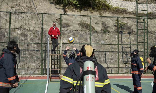 İtfaiye kostümüyle voleybol oynadılar, nefes kontrolü yaptılar