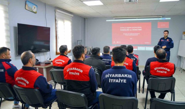Diyarbakır Büyükşehir Belediyesi İtfaiye Dairesi Başkanlığında görev yapan itfaiye personeline baca yangınları ve müdahale yöntemlerine dair eğitim verildi.