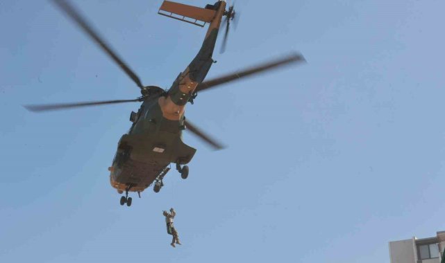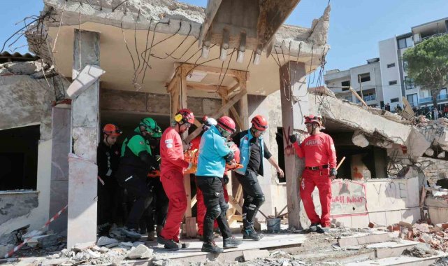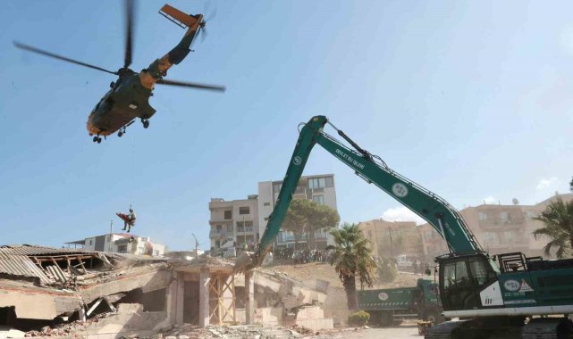 İzmir'de 6.6 büyüklüğünde depreme, helikopterle müdahale tatbikatı gerçekleştirildi