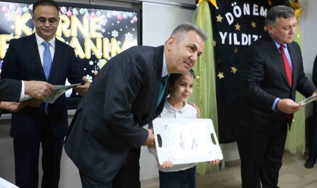İzmir'de 738 bin 886 öğrenci karnesini alarak yarıyıl tatiline çıktı. İzmir Valisi Süleyman Elban ve İzmir İl Milli Eğitim Müdürü Ömer Yahşi düzenlenen törene katılıp, öğrencilere karnelerini dağıttı.