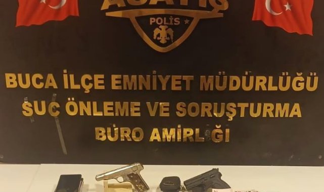 İzmir'in Buca ilçesinde düzenlenen operasyonlarda binlerce sentetik hap, metamfetamin, ruhsatsız tabanca ve yüklü miktarda para ele geçirildi.Buca İlçe Emniyet Müdürlüğü ekiplerince Mustafa Kemal Mahallesi'nde gerçekleştirilen operasyonda E.C.U. ve B.Ö. isimli şüpheliler yakalandı. Şüphelilerin bulunduğu araçta yapılan aramada 58 bin 912 adet uyuşturucu nitelikli hap ele geçirildi. Ekiplerin ilçede yürüttüğü bir başka çalışmada da E.A., S.D. ve Y.A. isimli şüpheliler yakalandı. Şahısların üzerlerinde ve adreslerinde yapılan aramalarda 2 adet ruhsatsız tabanca, 35 adet 7.65 mm fişek, 49 adet uyuşturucu nitelikli hap, 91 gram metamfetamin ve uyuşturucudan elde edildiği değerlendirilen 178 bin 900 TL geçirildi.Gözaltına alınan şüpheliler, emniyetteki işlemlerinin ardından adli mercilere sevk edildi.