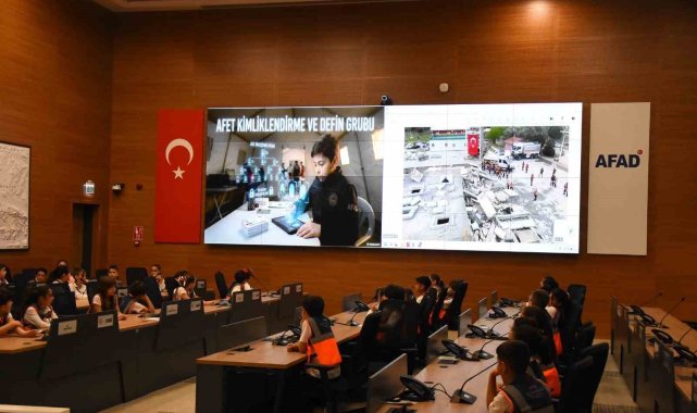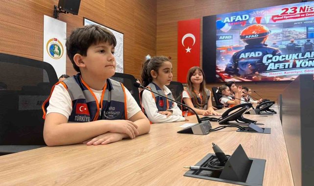 İzmir'de 23 Nisan Ulusal Egemenlik ve Çocuk Bayramı etkinlikleri kapsamında Afet ve Acil Durum Yönetimi Başkanlığı (AFAD) İl Müdürlüğünü ziyaret eden ilkokul öğrencileri, hem afet bilinci eğitimi aldı hem de senaryo gereği meydana gelen deprem krizini yönetti.