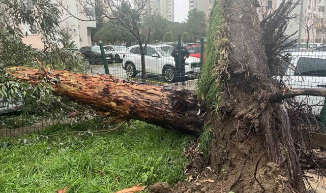 İzmir'de fırtına ağaçları devirdi: 5 araç hasar gördü