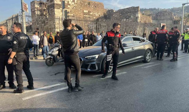 İzmir'in Konak ilçesinde motosikletli bir kişinin araca ateş açması sonucu 1 kişi ağır yaralandı. Olay sonrası kaçan şüpheli kısa sürede yakalanırken, yaralının hayati tehlikesinin sürdüğü öğrenildi.Edinilen bilgilere göre, saat 16.00 sıralarında Konak ilçesi Eşrefpaşa Caddesi'nde motosikletli A.Y. (22), 34 GGU 27 plakalı araca ateş açtı. İhbar üzerine olay yerine polis ve sağlık ekipleri sevk edildi. Sağlık ekiplerince yapılan kontrolde, araçta bulunan A.T.'nin (31) ağır yaralandığı belirlendi. Yaralı, ambulansla Tepecik Eğitim ve Araştırma Hastanesi'ne kaldırılarak tedavi altına alındı. A.T.'nin hayati tehlikesinin devam ettiği öğrenilirken, saldırının ardından kaçan şüpheli A.Y. polis ekiplerince kısa sürede yakalanarak gözaltına alındı. Polis ekiplerince yapılan incelemede taraflar arasında önceden husumet bulunduğu, olayın bu nedenle gerçekleştirildiği belirlendi. Olayla ilgili soruşturma sürüyor.28 Mayıs 2023 tarihinde aralarında alacak-verecek meselesi nedeniyle husumet bulunan iki grubun konuşmak üzere 574. Sokak'ta bir araya geldiği, görüşme sırasında iki grup arasında tabanca ile karşılıklı ateş açılması sonucu A.Y.'nin (26) başından, kardeşi A.Y. ile birlikte üç kişinin ise vücutlarının çeşitli yerlerinden yaralandığı öğrenildi. Olaydan bir gün sonra akşam saatlerinde 2 kişi tarafından Zafertepe Mahallesi 574. Sokak'ta bulunan kıraathaneye molotofkokteylli saldırı düzenlendiği ve bu nedenle iki grup arasında husumat bulunduğu öğrenildi.