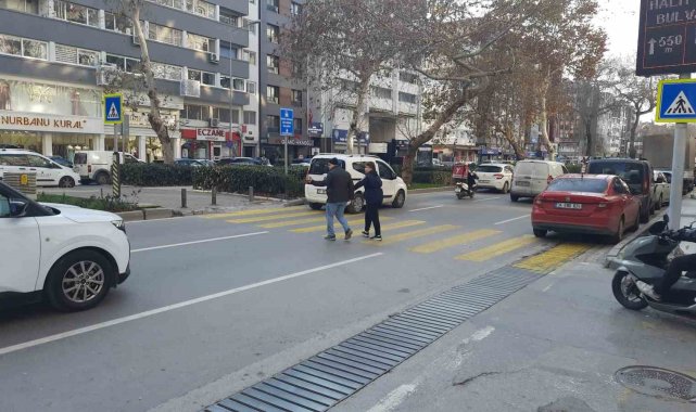 İzmir'in Konak ilçesinde yaya geçidinde yolun karşısına geçmek için bekleyen vatandaşlara yol vermeyen sürücüler kameraya yansıdı.İzmir'in kalabalık bölgelerinden olan Gazi Bulvarı'nda bulunan yaya geçidinde sürücüler yayalara öncelik vermeyerek, trafik güvenliğini tehdit ediyor. Yolun karşısına geçmek isteyen vatandaşlar ise bu duruma zaman zaman tepki gösterdi. Tehlikeli anların yaşandığı yaya geçidinde yolun karşısına geçemeyen vatandaşlar zor anlar yaşarken, o anlar ise saniye saniye kaydedildi.2025 yılı itibarı ile yayalara yol vermeme cezasının 4 bin 512 lira olduğu bildirilmişti.
