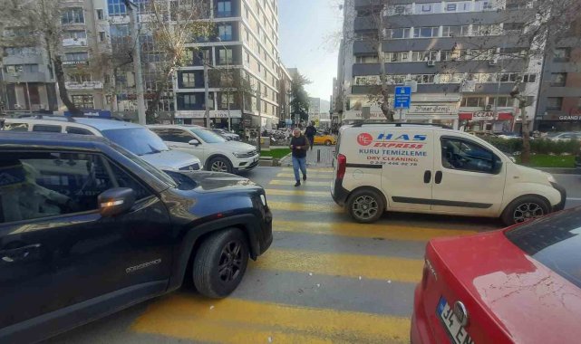 İzmir'in Konak ilçesinde yaya geçidinde yolun karşısına geçmek için bekleyen vatandaşlara yol vermeyen sürücüler kameraya yansıdı.
