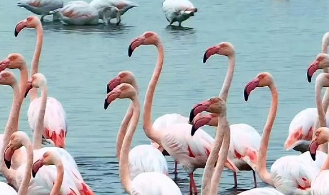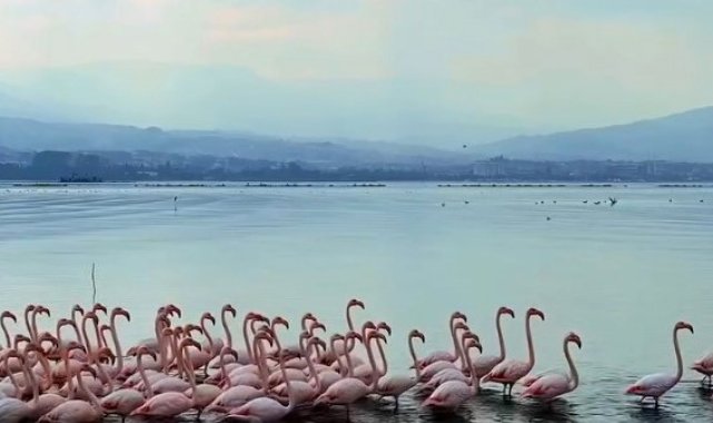 Göçmen kuşların önemli duraklarından biri olan İzmit Körfezi, bu yıl da "allı turna" olarak da bilinen flamingoları ağırlıyor.
