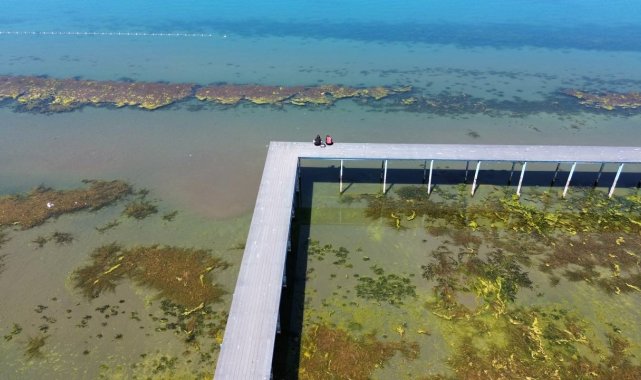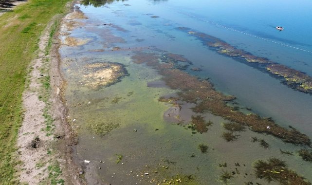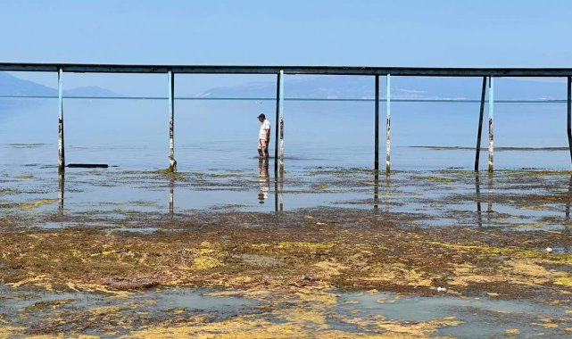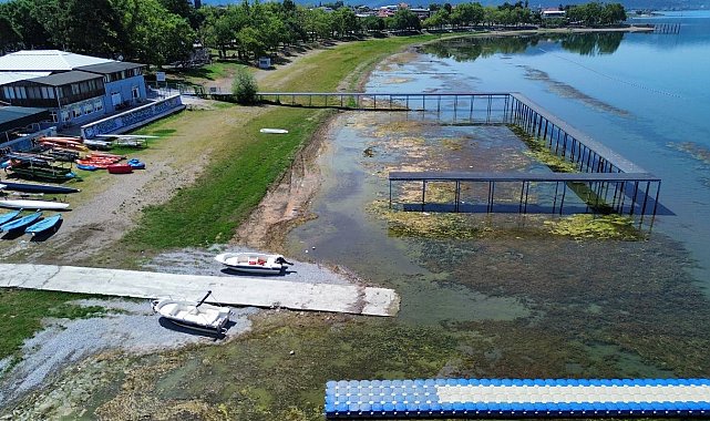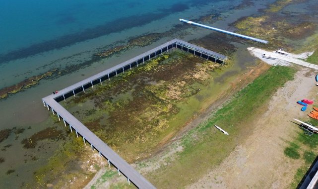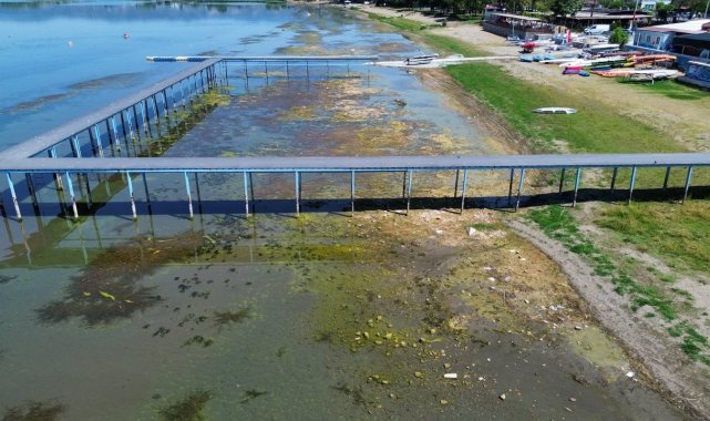 İznik Gölü'nde korkutan görüntü...En büyük iskelesi karaya oturdu