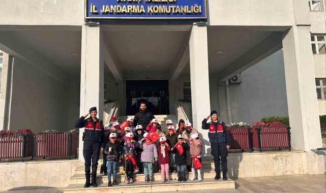 Aydın İl Jandarma Komutanlığı'nı ziyaret eden anaokulu öğrencileri, jandarmayı daha yakından tanıdı.