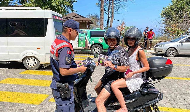 Aydın Kuşadası Dilek Yarımadası Milli Parkı'nda yerli ve yabancı turistlere orman yangınları konusunda bilgilendirmede bulunularak broşürler dağıtıldı.