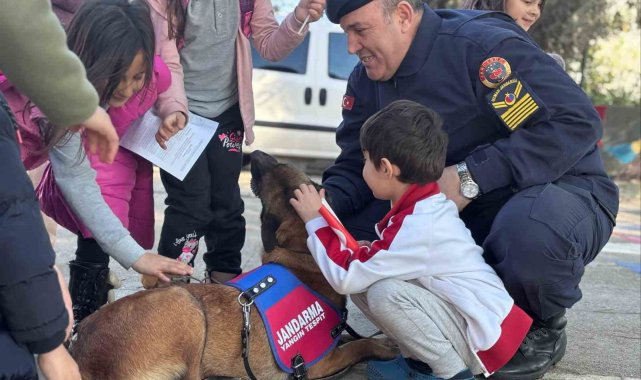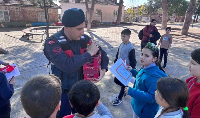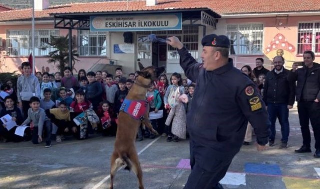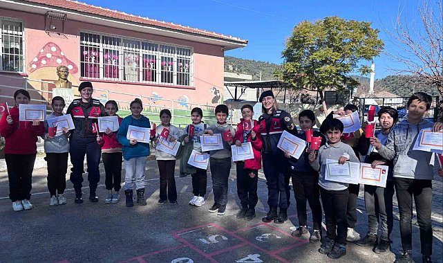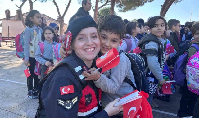 Aydın'ın Sultanhisar ilçesinde jandarma ekipleri Eskihisar İlkokulu'nu ziyaret ederek öğrencilerin karne heyecanlarına ortak oldu. >Aydın İl Jandarma Komutanlığı Aile içi Şiddetle Mücadele ve Çocuk Kısım Amirliği, Sultanhisar İlçe Jandarma Komutanlığı ve Köpek Unsurları Sultanhisar Eskihisar İlköğretim Okulu'nu ziyaret etti. Geleceğin teminatı olan öğrencilerin 2024-2025 Eğitim ve Öğretim yılı yarı yıl tatili karne dağıtım törenlerine de katılan jandarma ekipleri öğrencilere Türk bayrakları ile birlikte küçük hediyeler vererek karnelerini ödüllendirdi.