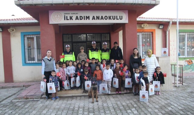 Şırnak İl Jandarma Komutanlığı ekipleri, Kumçatı Beldesi İlkadım Anaokulu öğrencileri ve öğretmenleri, eğitici ve eğlenceli bir etkinlikte bir araya geldi. Eğitimde trafik bilinci, aile içi şiddetle mücadele ve jandarma mesleği tanıtıldı.Şırnak İl Jandarma Komutanlığına bağlı Trafik Kısım Amirliği ve 1'inci Jandarma Trafik Tim Komutanlığı, 'Trafik Dedektifleri' projesi kapsamında öğrencilere trafik güvenliği ve emniyet kemeri kullanımı gibi hayati konuları aktardı. Çocuklar, jandarma ekiplerinin hazırladığı eğitimlerle trafik kurallarını eğlenerek öğrendi. Aile İçi Şiddetle Mücadele ve Çocuk Kısım Amirliği ekipleri, çocuklara jandarma mesleğini tanıtmak ve sevdirmek amacıyla keyifli bir sunum gerçekleştirdi. Çocukların mesleğe olan ilgisini artırmak için hazırlanan 'Tim Jandarma' çizgi filmi ise büyük beğeni topladı.Eğitimin ardından Asayiş Şube Müdürlüğüne bağlı 'Çevik' isimli operasyon köpeği, öğrenciler ve öğretmenler için özel bir gösteri gerçekleştirdi. Çevik'in sergilediği beceriler hem çocukların hem de öğretmenlerin büyük ilgisini çekti. Ayrıca etkinlik sonunda öğrencilere ve öğretmenlere çeşitli materyaller dağıtılarak gün unutulmaz kılındı.