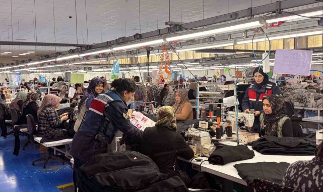 Afyonkarahisar'da jandarma ekipleri ziyaret ettiği tekstil fabrikasında yaklaşık 300 kadına KADES uygulamasını tanıttı.