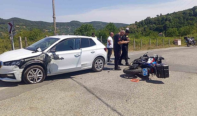 Zonguldak'ın Çaycuma ilçesinde jandarmaya ait motosikletle otomobilin çarpışması sonucu meydana gelen kaza maddi hasarla atlatıldı.