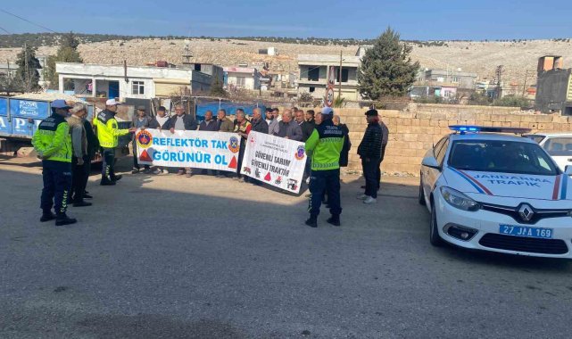 Gaziantep'te jandarma ekiplerince 395 traktör sürücüsüne güvenlik trafik ve güvenli tarım eğitimi verildi.Gaziantep İl Jandarma Komutanlığı Trafik Jandarması tarafından Nizip, Araban, Oğuzeli ve Yavuzeli ilçelerinde 395 traktör sürücüsüne güvenli tarım ve güvenlik trafik kapsamında eğitim verildi. Eğitim çerçevesinde robs demiri kullanımının önemi ve traktörlerde kullanılacak aydınlatmalar ile genel trafik güvenliği hakkında bilgilendirmelerde bulunuldu.Eğitim sonrası 395 traktör sürücüsüne reflektör dağıtımı yapılarak ve reflektör kullanımında farkındalığın sağlanması amacıyla bilgilendirme yapıldı.