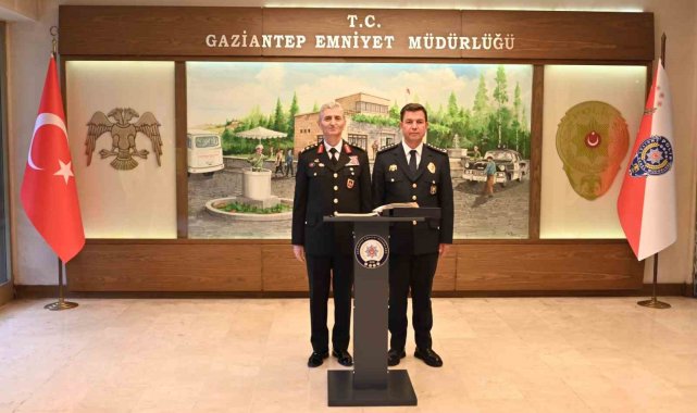 Gaziantep İl Jandarma Komutanı Tümgeneral Halil Şen ve beraberindeki heyet, İl Emniyet Müdürü Celal Özcan'ı ziyaret ederek Türk Polis Teşkilatı'nın 181'inci kuruluş yıl dönümünü kutladı.Gaziantep İl Jandarma Komutanı Tümgeneral Halil Şen ve beraberindeki personeli, Türk Polis Teşkilatı'nın 181'inci kuruluş yıl dönümü münasebetiyle Gaziantep İl Emniyet Müdürü Celal Özcan'ı makamında ziyaret etti. Tümgeneral Halil Şen, ziyarette Türk Polis Teşkilatı'nın 181'inci kuruluş yıl dönümünü kutlayarak ülkenin huzur ve güvenliği için omuz omuza görev yapan iki kurumun birlik ve beraberliğine vurgu yaptı.Emniyet müdürü Celal Özcan ise ziyaretleri ve kutlama dilekleri için Tümgeneral Şen ve beraberindeki heyete teşekkür etti.