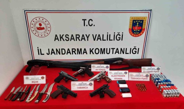 Aksaray'da kaçak silah bulunduran şahıslara yönelik operasyon düzenleyen jandarma, kaçak silah, tüfek ve mühimmatlarla birlikte 9 şahsı gözaltına aldı.