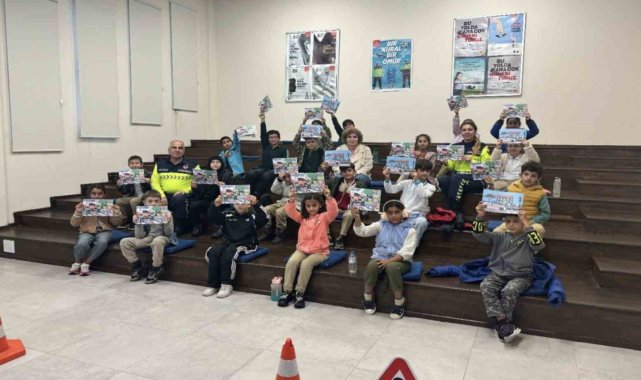 Çanakkale'de jandarma ekipleri, Karakaya İlkokulu öğrencileri genel trafik kuralları hakkında bilgilendirdi.