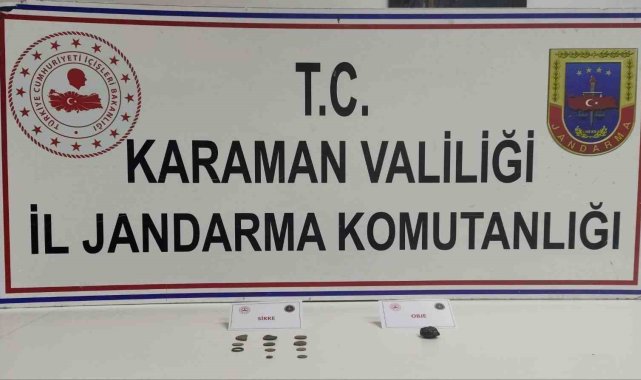 Karaman'da jandarmanın yaptığı uygulamalarda çeşitli suçlardan aranan 2 kişi tutuklanırken, tarihi eserler ve esrar ele geçirildi.