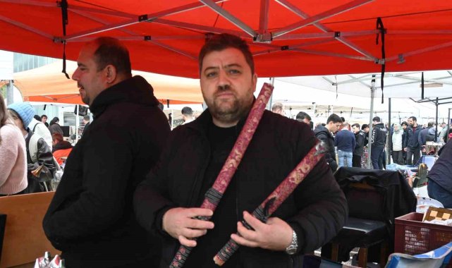Japon kılıçlarından Osmanlı saatlerine birçok ürünün bulunduğu antika tezgahına yoğun ilgi