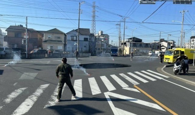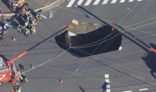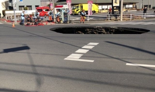 Japonya'nın Saitama eyaletindeki bir yol, henüz bilinmeyen bir nedenle çöktü. Yoldan geçen bir kamyonet oluşan dev çukura düşerken, yaralı şoförü kurtarma çalışmalarının sürdüğü bildirildi.