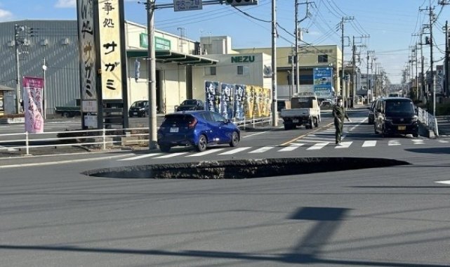 Japonya'da yol çöktü, oluşan dev çukura kamyonet düştü