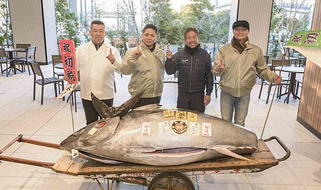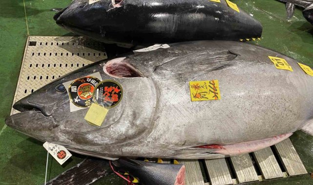 Japonya'daki Toyosu Balık Hali'nde yapılan geleneksel yeni yıl mezatında 276 kilogramlık mavi yüzgeçli orkinos 1,3 milyon dolara alıcı buldu.Japonya'nın başkenti Tokyo'da bulunan Toyosu Balık Hali, yeni yılda düzenlenen geleneksel balık mezatına ev sahipliği yaptı. Balıkçılar, Japonya ve dünyanın farklı bölgelerinden tutulan orkinos balıklarını en yüksek fiyata satabilmek için kıyasıya yarıştı. Bu yılki balık mezatında en yüksek fiyat ise Japonya'nın Aomori eyaletinde yakalanan ve 207 milyon yene (yaklaşık 1,3 milyon dolar) satılan 276 kilogramlık mavi yüzgeçli orkinos oldu.Dev balığa bir gıda firması tarafından verilen fiyat, 1999 yılında söz konusu alanda veri tutulmaya başlanmasından bu yana görülen en yüksek ikinci fiyat olarak kayıtlara geçti. 2019 yılında yapılan balık mezatında, Aomori eyaleti açıklarında yakalanan 278 kiloluk bir mavi yüzgeçli orkinos 333.6 milyon yene (yaklaşık 2,1 milyon dolar) rekor fiyata satılmıştı.