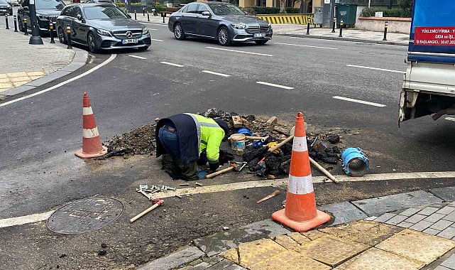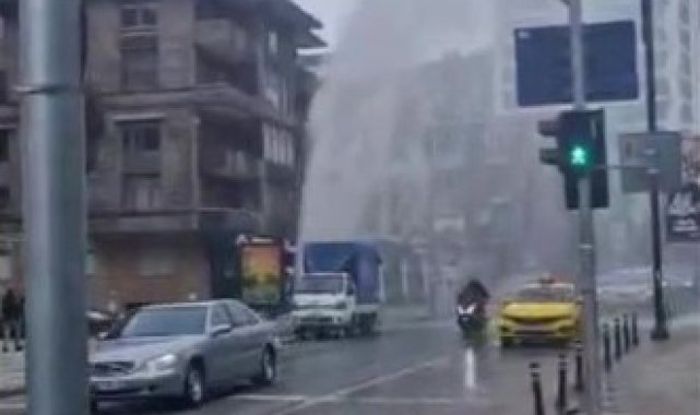 Kadıköy'de su borusu patladı, tazyikli su metrelerce yükseğe fışkırdı