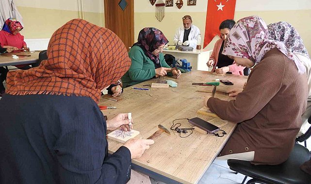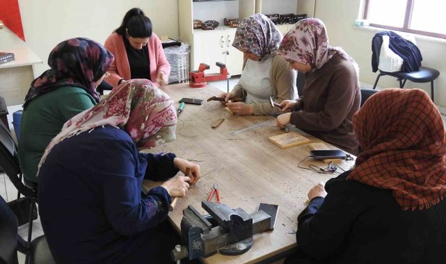 Şahinbey Belediyesi'ne bağlı Hasan Celal Güzel Gençlik Merkezi'nde sedef kakma kursuna katılan kadınlar, hünerli elleriyle birbirinden güzel ahşap işlemeler yapıyor.