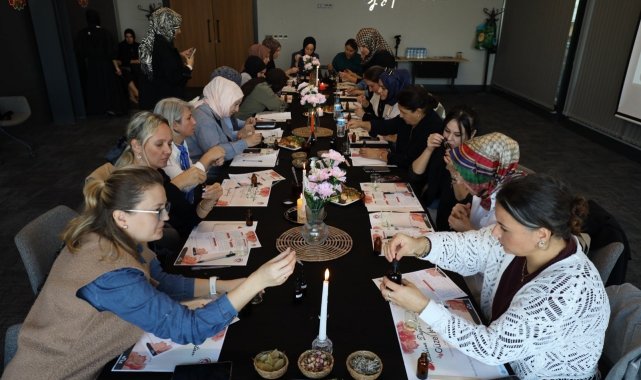 Başiskele'de düzenlenen programda kadınlar, aromaterapik masaj yağı yapımı ve yüz yogası teknikleri hakkında teorik ve uygulamalı bilgiler edindi.