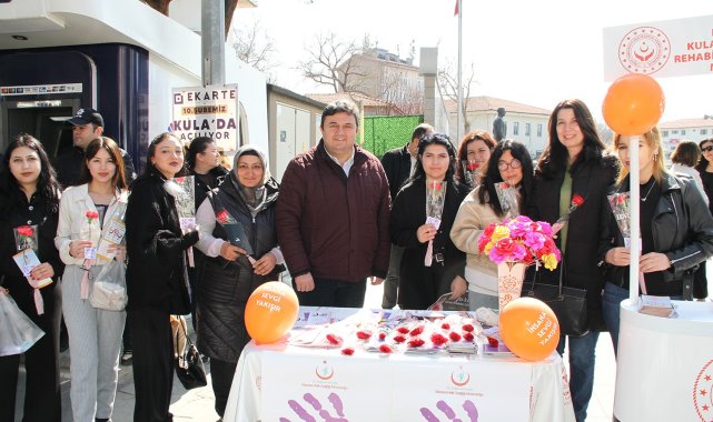Manisa'nın Kula ilçesinde 8 Mart Dünya Kadınlar Günü kapsamında kadına yönelik şiddete dikkat çekmek amacıyla farkındalık standı açıldı. İlçe merkezinde kurulan stantta kadınlara karanfil dağıtılırken, vatandaşlara Kadın Acil Destek Uygulaması (KADES) hakkında bilgi verildi.