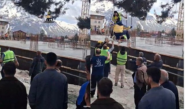 Hakkari'de bir kuruma ait inşaatta çalışan işçi, kafasına beton mikserine ait pompa borusunun düşmesi sonucu yaralandı.