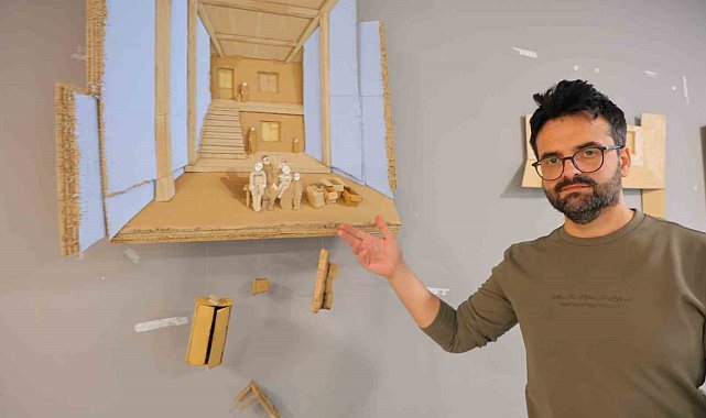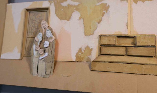 Kahramanmaraş'ta atık koli kutularından oluşturulan Filistin'in sessiz duvarları isimli sergi açıldı.