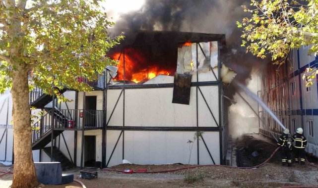 Kahramanmaraş'ta deprem konutlarında çalışan işçilerin kaldığı konteynerlerde yangın çıktı. Yangın paniğe neden olurken, konteyner içerisinde kimsenin bulunmaması facianın önüne geçti.
