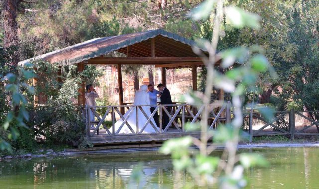 Kahramanmaraş'ta yüzlerce ağaç çeşidine ev sahipliği yapan Kapıçam Tabiat Parkı, vatandaşların ilgisini çekiyor. 4 mevsim farklı bir renge bürünen bahçe sonbaharın gelmesiyle ağaçlardaki renk cümbüşü görsel şölen oluşturuyor.Kahramanmaraş şehir merkezine 13 kilometre de bulunan 400'ün üzerinde otsu ve odunsu bitkiyi barındıran botanik bahçe yıl boyu ilgi görüyor.Bünyesinde botanik bahçeyle birlikte kınalı keklik üretim istasyonu, 3 adet yapay gölet, mesire alanı ve farklı macera oyun gruplarının bulunduğu ekstrem parkı da bulunuyor.Yüzlerce çeşit ağaç, çiçek ve aromatik bitkinin yer aldığı tabiat parkı, hem yetişkinlere hem de çocuklara hitap ediyor. Bir botanik okulu gibi değerlendirilen alanda farklı bitki türlerini görülüyor.Kapıçam Tabiat Parkı, bitki, kuş ve böcek fotoğrafı çekmeyi sevenler için de dört mevsim fırsatlar sunuyor. Bahar ayında açan rengarenk çiçekleri ve her mevsim farklı renge bürünen gövde ve yaprakları ile sayısız botanik varlığı, bitkilerle birlikte bölgeye akın eden kuş ve böcek türleri ilgi görüyor. Adeta açık hava stüdyosunu andıran alan çiçeği burnunda çiftlerinde fotoğraf çekmek için gittiği önemli bir yer haline geldi.Hakan Yılmaz, "Düğünümüz var ve onlar için botanik alanı seçtik. Doğa ile iç içe gölleri ve manzarası güzel. Mutlu olurlar inşallah. Burası doğa ile iç içe çok güzel bir yer" dedi.