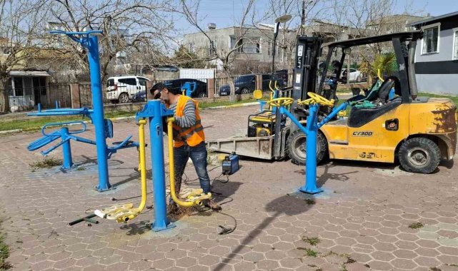 Adıyaman'ın Kahta ilçe Belediyesi, yaz mevsiminin yaklaşmasıyla birlikte ilçe genelindeki park ve yeşil alanlarda temizlik, bakım ve onarım çalışmalarını yoğun bir şekilde sürdürüyor.