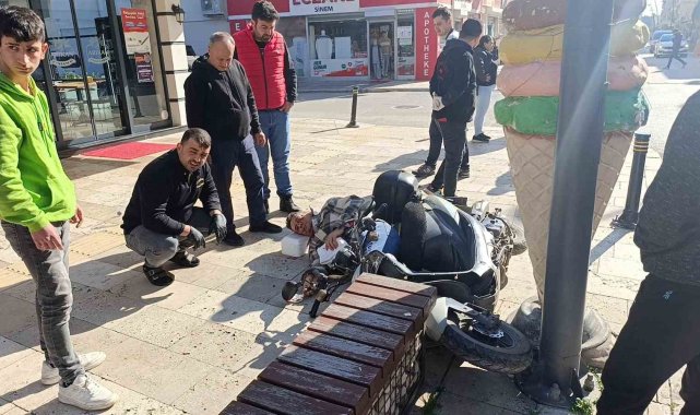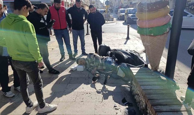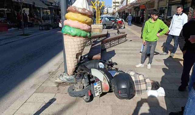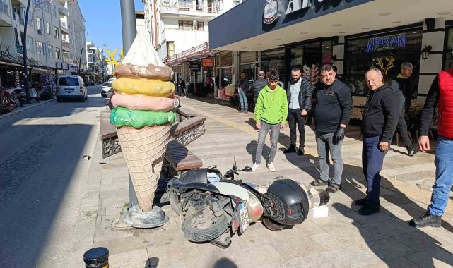 Kaldırıma çıkıp dondurma külahı reklam panosuna çarpan motosikletli yaralandı