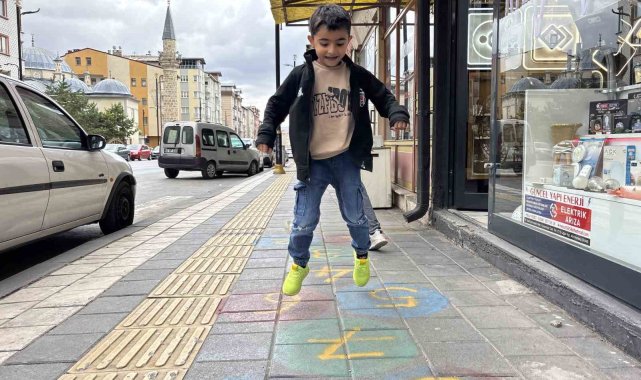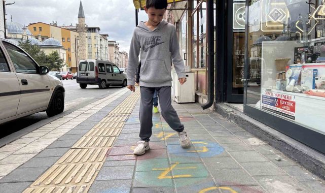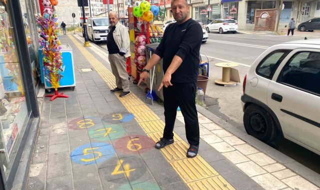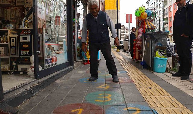 Sivas'ta bir esnafın iş yerinin önündeki kaldırıma çizdiği seksek oyunu, gencinden yaşlısına birçok kişiyi çocukluğuna götürdü.