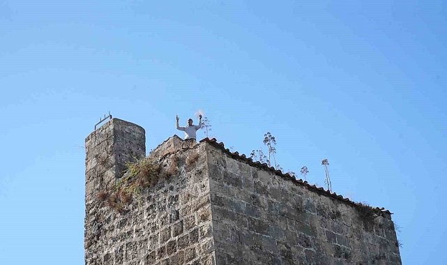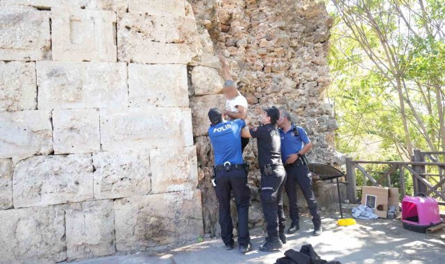 Kaleiçi'nde surların üzerine çıkan vatandaş, polisi alarma geçirdi