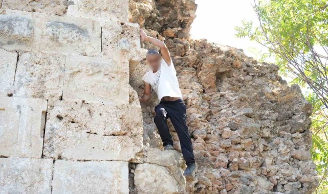 Antalya'nın turistik merkezi Kaleiçi'nde surların üzerine çıkıp "15-16 yaşındaki çocukları silahlandırdılar" diye bağıran şahıs, polisi alarma geçirdi. Ekiplerin yardımıyla surdan aşağı indirilen şahıs, ambulansla hastaneye kaldırıldı.Olay, Muratpaşa ilçesi sınırlarında yer alan tarihi Kaleiçi'nde gerçekleşti. Kaleiçi surlarından birinin üzerine tırmanarak çıkan R.Ş., 1 saat boyunca yaklaşık 20 metre yükseklikteki surun üzerinden "15-16 yaşındaki çocukları silahlandırdılar" diye bağırarak elindeki kağıtları ve fotoğrafı surdan aşağı attı. Polis çevrede güvenlik önlemleri alırken kısa sürede olay yerine itfaiye ve ambulans ekipleri geldi. İtfaiyenin yardımını istemeyen vatandaş, polis ekiplerinin de desteğiyle kendi imkanıyla surun üzerinden indi. Ambulansla Antalya Eğitim ve Araştırma Hastanesine kaldırılan R.Ş., aracın içinde Kuzeyyaka Mahallesi'nde yaşadığını ve çocuğuna silah verildiğini öne sürdü.O anlar ise çevredeki esnaf ve yabancı turistlerce cep telefonlarıyla kaydedildi. Olay yerinde bulunan Hüseyin Aydın, "Biz buraya geldiğimizde yukarı çıkmıştı, bağırıyordu. Çocuklarıyla ilgili bir konudan bahsediyordu. Bir saat kadar yukarıda kaldı, sonra itfaiye ve ambulans ekipleri geldi. Kendiliğinden indi" diye konuştu.