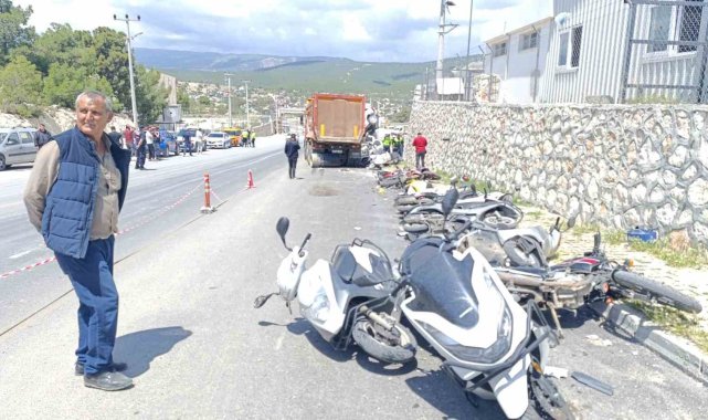 Mersin'in Silifke ilçesinde sürücüsünün direksiyon hakimiyetini kaybettiği kamyon, işçilerin park ettiği 13 motosiklete vurup, 2 otomobil ile bir tıra çarptı. Ucuz atlatılan kazada sürücü dahil kimse yaralanmadı.