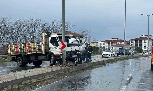 Tekirdağ'ın Muratlı ilçesinde sürücüsünün direksiyon hakimiyetini kaybetmesi sonucu yoldan çıkarak aydınlatma direğine çarpan kamyonetteki 2 kişi yaralandı.Kaza, dün akşam saatlerinde Fatih Mahallesi Mustafa Kemal Caddesi üzerinde meydana geldi. İddiaya göre; Aytekin Ç. idaresindeki 59 EP 601 plakalı kamyonet, yağışlardan dolayı kayganlaşan zemininde sürücüsünün direksiyon hakimiyetini kaybetmesi sonucu orta refüje çıkarak aydınlatma direğine çarptı. Araçta sıkışan yaralılar Aytekin Ç. ve Gülten Ç.'yi olay yerine gelen itfaiye ekipleri kurtardı. Yaralılar ambulansla hastaneye kaldırıldı.Tek taraflı yaralamalı trafik kazasıyla ilgili inceleme başlatıldı.