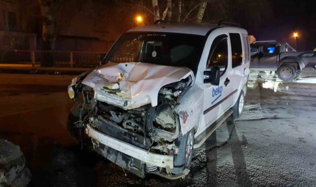 Kamyonet ile hafif ticari araç kafa kafaya çarpıştı: 3 yaralı